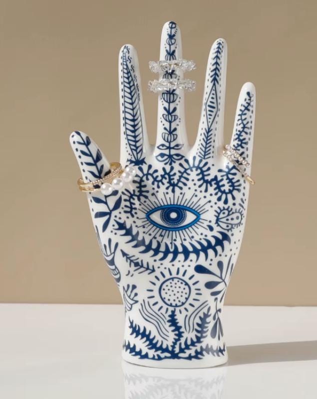 Bring a touch of mystery, protection, and elegance to your home with this unique display inspired by the Hand of Fatima and the Eye of Protection. Handcrafted from high-quality ceramic, it combines spiritual symbolism with modern design.
